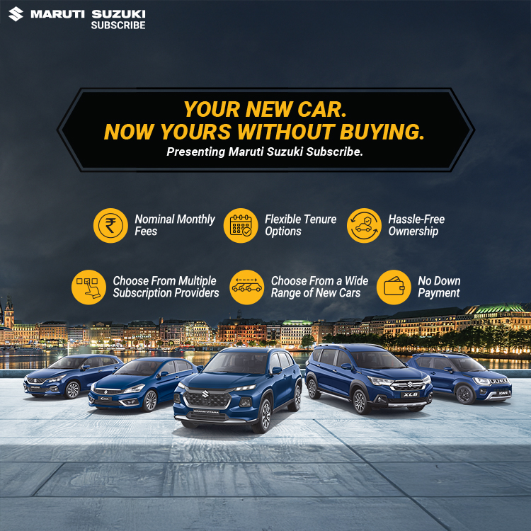 Located in Bhimavaram, Novelty offers a plethora of options of Nexa cars for Maruti Suzuki Subscribe. You can choose your desired Maruti Suzuki car and drive it home at nominal monthly fees for a variety of flexible tenure periods. Whether you prefer Hatchback, Sedan, SUV or even MUV you are sure to find it at Novelty, with an easy Maruti Suzuki Subscribe plan.